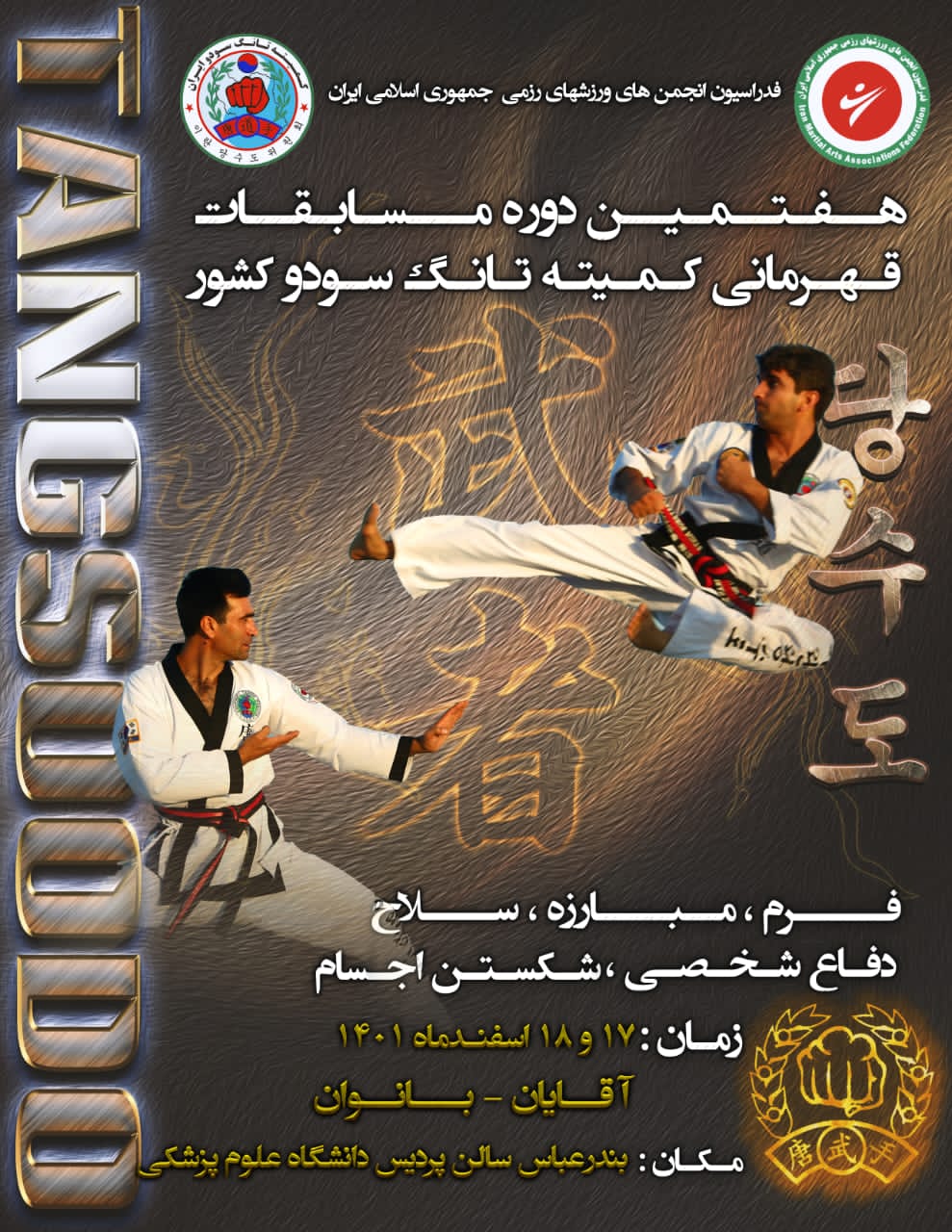 هفتیم دوره مسابقات قهرمانی کمیته تانگ سودو کشور در مورخ 1401/12/18 در استان هرمزگان شهرستان بندرعباس در سالن پردیس دانشگاه علوم پزشکی استان هرمزگان با حضور 160 ورزشکار از 9 استان کشور باشکوه برگزار شد که در پایان این دوره از رقابت ها استان هرمزگان بربام کمیته تانگ سودو ایران ایستاد و استانهای فارس و خراسان رضوی به ترتیب مقام های دوم و سوم را کسب کردند و کاپ اخلاق به استان کرمان اهدا شد.